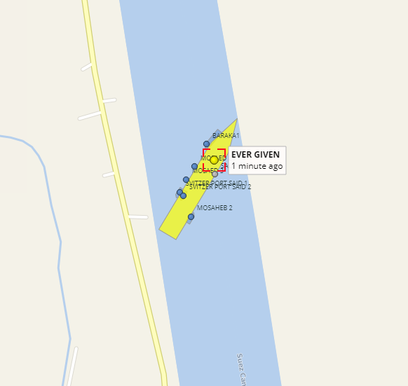 The ship's name is the ever given because it's owned by evergreen marine corp. The ever given is currently facing extreme difficulty in refloating the ship, the owner said. The bottleneck has brought traffic to a standstill in. But the ever given stayed its course through the canal, on its way to rotterdam from china. As gusts that reached as high as 46 miles an hour swept up the blockage highlights a major risk faced by the shipping industry as more and more ships transit maritime choke points including the suez, panama.